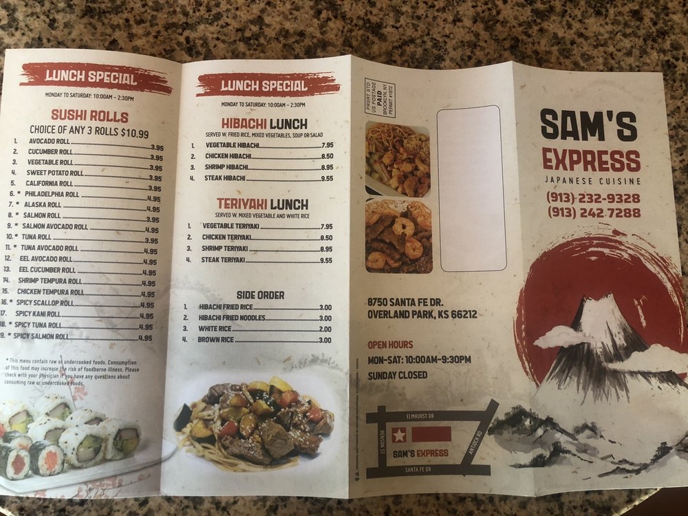 Welcome to Sam’s Express Sushi & Grill, a delightful stop for Japanese cuisine nestled in Overland Park, KS. This cozy eatery combines quality sushi with accessible pricing, making it a hidden gem for both locals and visitors. The menu features a variety of rolls, including the popular Hollywood and Phoenix rolls, that highlight freshness and thoughtful preparation.